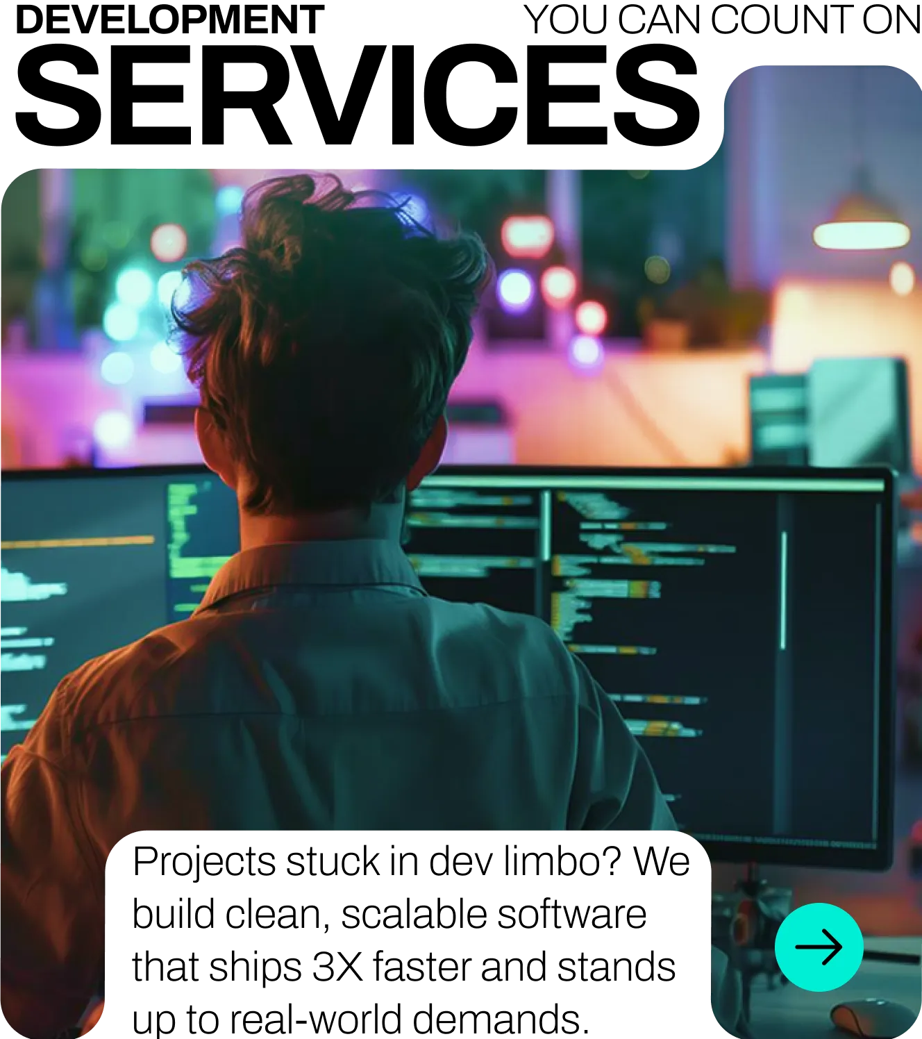 Our development services are designed for speed, scale, and budget clarity. No bloated retainers. No long-term lock-ins.